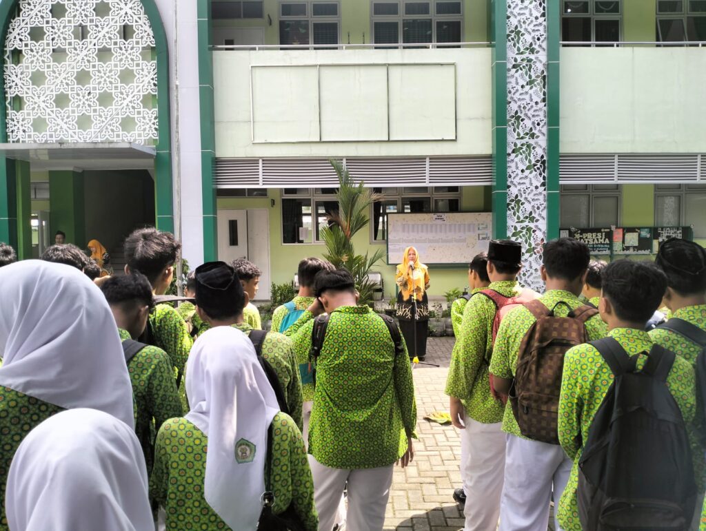 Kemenag Sleman News (MTsN 9 Sleman)â Dalam suasana penuh khidmat dan semangat kebersamaan, Kepala MTsN 9 Sleman yakni Siti Juwariyah memberikan sambutan dalam acara Apel Pentasyarufan Hewan Qurban yang dilaksanakan pada Kamis (5/6/2025) pukul 12.45 WIB bertempat di halaman madrasah. Acara ini diikuti oleh seluruh siswa kelas VII dan VIII, Bapak/Ibu guru, serta pegawai MTsN 9 Sleman. Turut hadir pula jajaran pengurus komite madrasah, serta perwakilan pengurus takmir masjid dan mushola dari lingkungan sekitar sebagai bentuk sinergi dan kepedulian terhadap masyarakat sekitar.