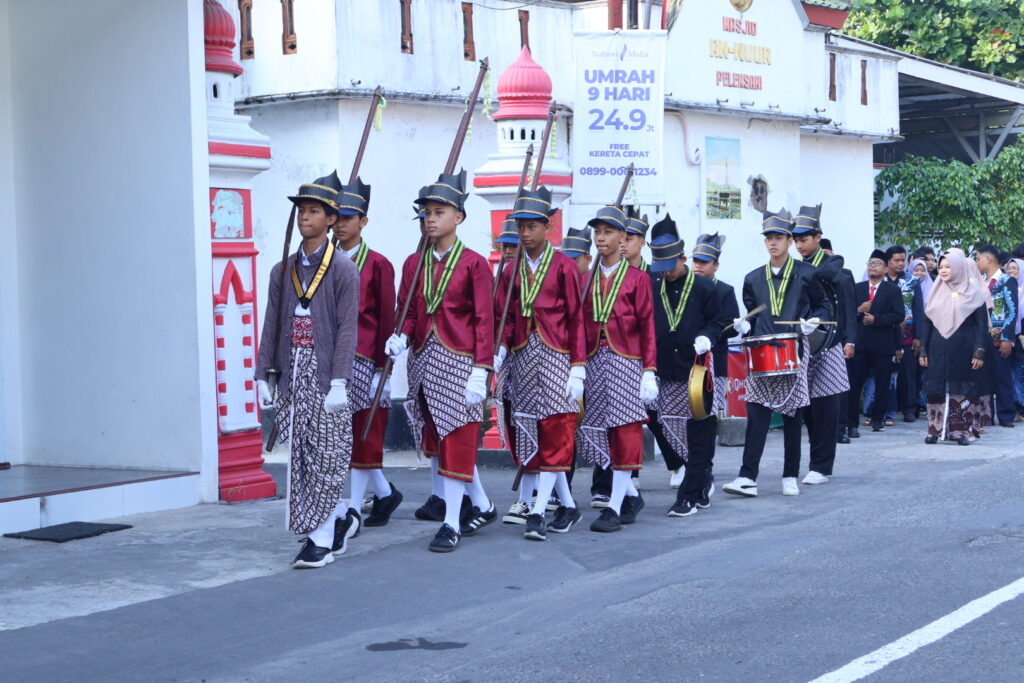Bregada MTsN 8 Sleman Gagah Iringi Kirab Pelepasan Siswa Kelas 9