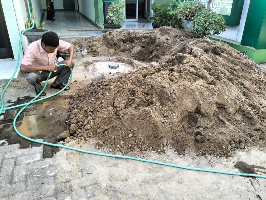 Kemenag Sleman News (MTsN 9 Sleman)— Menjelang penilaian Adiwiyata tingkat Nasional, Madrasah Tsanawiyah Negeri (MTsN) 9 Sleman terus berbenah diri, salah satunya dengan membangun sumur resapan sebagai upaya perbaikan drainase. Pengerjaan sumur resapan ini dilakukan oleh tenaga ahli pada Rabu (11/6/2025).