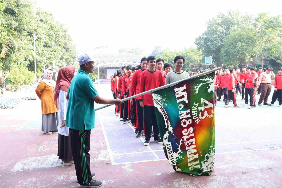 Sebagai simbol pembukaan, Kepala MTsN 8 Sleman mengibarkan bendera batik ciprat khas MTsN 8 Sleman, hasil karya siswa kelas keterampilan. Simbol ini menandai dimulainya perjalanan seluruh peserta menyusuri rute jalan sehat yang melintasi pedesaan dan persawahan asri di sekitar lingkungan madrasah.