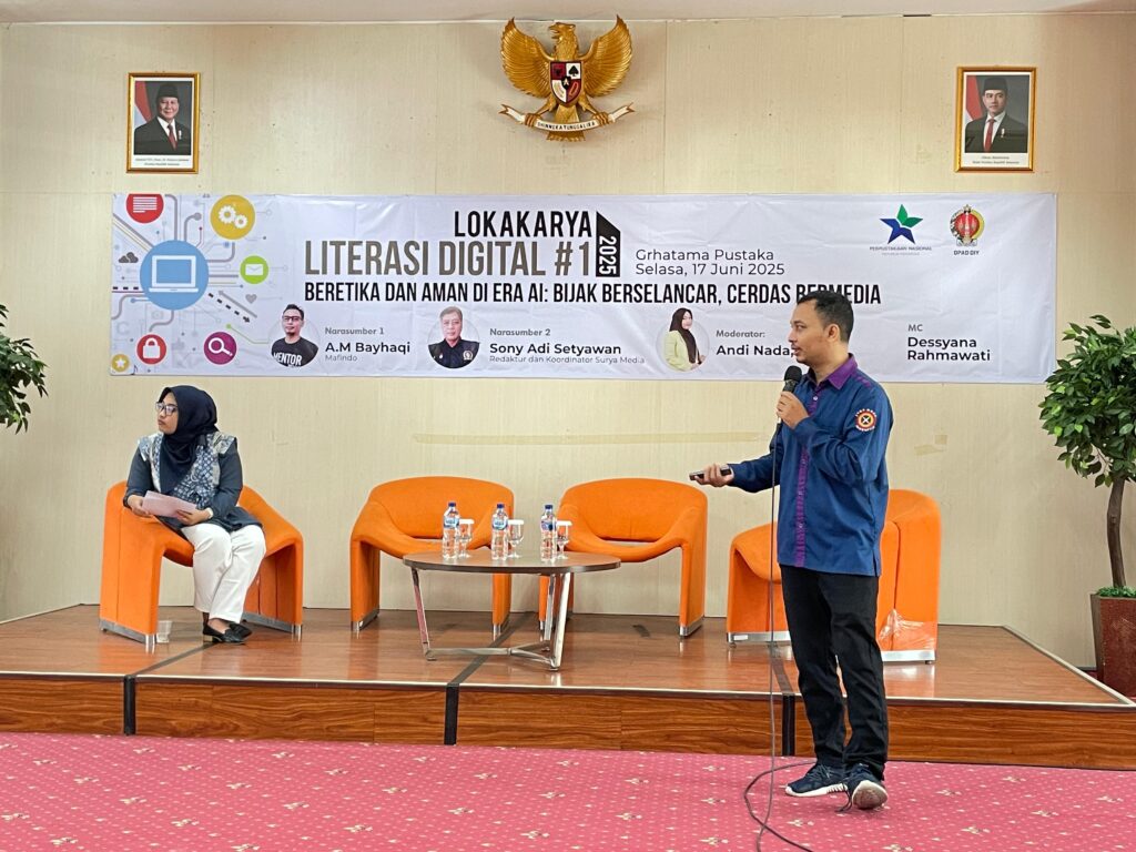 Kemenag Sleman News (MAN 3 Sleman) – Selasa (17/06/2025) pustakawan MAN 3 Sleman, Ananda Dwiputri, S.IP. dibersamai oleh Kepala Perpustakaan Mayoga, Toni Poerwanti, S.Pd., M.Pd menyambangi Grhatama Pustaka DIY. Tujuan dari keduanya ialah untuk mengikuti Lokakarya Literasi Digital #1 dengan tema “Beretika dan Aman di Era AI: Bijak Berselancar, Cerdas Bermedia”. Peserta yang menghadiri acara dari kalangan masyarakat umum, UMKM sampai dengan pengacara.