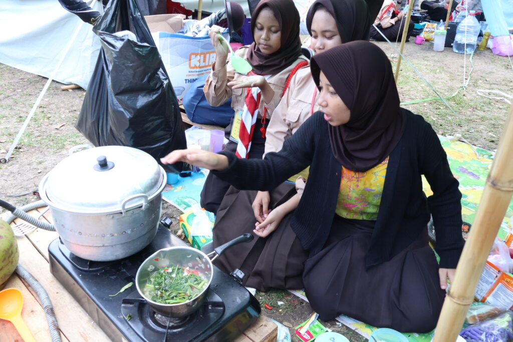 Setiap regu bertanggung jawab menyiapkan sendiri menu sarapan, makan siang, dan makan malam mereka. Bahan makanan dibawa langsung dari rumah dan dikelola secara mandiri oleh masing-masing kelompok. Di bawah tenda dapur yang disediakan panitia, para siswa bergantian menunjukkan kemampuan memasak mereka, mulai dari menanak nasi, menumis sayur, hingga menggoreng lauk pauk.