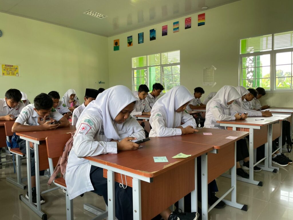 Kemenag Sleman News (MTsN 4 Sleman) – MTs Negeri 4 Sleman menyelenggarakan Asesmen Sumatif Akhir Tahun (ASAT) bagi siswa kelas VII dan VIII dengan tertib dan lancar. Kegiatan ini berlangsung sejak Senin hingga Selasa, (3-17/6/2025). Seluruh siswa mengikuti asesmen menggunakan aplikasi Jogja Madrasah Digital (JMD) yang diakses melalui handphone masing-masing di ruang kelas yang telah ditentukan.