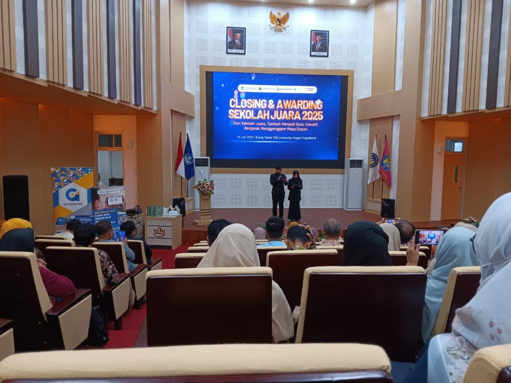 Kemenag Sleman News (MTsN 9 Sleman) – Sabtu pagi (14/06/2025), dua guru perwakilan dari MTsN 9 Sleman yakni Yuli Widiastuti dan Widyajayanti mengikuti acara Closing dan Awarding Sekolah Juara 2025. Sebanyak kurang lebih 25 guru dari seluruh jenjang di satuan pendidikan wilayah binaan Kantor Kementerian Agama Kabupaten Sleman menghadiri acara tersebut. Acara Closing dan Awarding Sekolah Juara 2025, di gelar di ruang Teater Magister dan Doktor FEB UNY dengan tema “Dari Sekolah Juara, Tumbuh Menjadi Guru Inovatif, Bergerak Menggenggam Masa Depan.” Acara di mulai pukul 08.00 WIB berakhir pada pukul 11.40 WIB. Sebelum memasuk ruangan, seluruh peserta melaksanakan registrasi terlebih dahulu dengan menunjukkan bukti pendaftaran.
