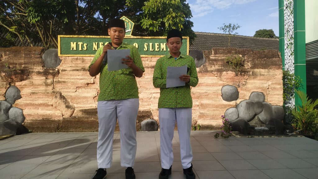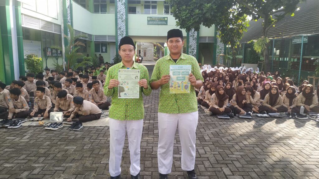 Kemenag Sleman News (MTsN 9 Sleman)— Kader Adiwiyata MTsN 9 Sleman kembali menunjukkan komitmennya dalam menjaga kelestarian lingkungan. Pada Kamis (19/6/2025) dua kader adiwiyata MTsN 9 Sleman yakni Sakha Alif Arkanadan Rifqi Wahyu Prayoga dari kelas VIIIA, menggelar kampanye serentak mengajak seluruh warga madrasah untuk senantiasa menjaga kebersihan dan menerapkan gaya hidup ramah lingkungan.