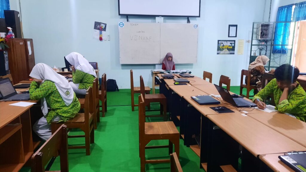 Kemenag News Sleman (MTsN 9 Sleman) – Siswa Madrasah Tsanawiyah 9 Sleman mengikuti ajang Olimpiade Sains Nasional (OSN) Tingkat Kabupaten secara daring pada Rabu (18/6/2025). Kegiatan ini berlangsung di Laboratorium Komputer MTsN 9 Sleman, meskipun digelar secara daring suasana kompetitif dan semangat juang siswa tetap terasa kental. Adapun bidang lomba yang diujikan pada OSN hari kedua ini yakni IPA dan IPS. Fathimatul Munawiroh dari SMP Sains Wahid Hasyim menjadi pengawas silang dalam OSN di MTsN 9 Sleman.