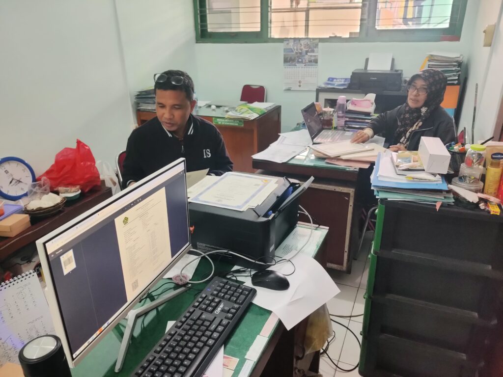 Waka Kurikulum dan Tim IT MTsN 9 Sleman Tunjukkan Profesionalisme Saat Cetak E-Ijazah