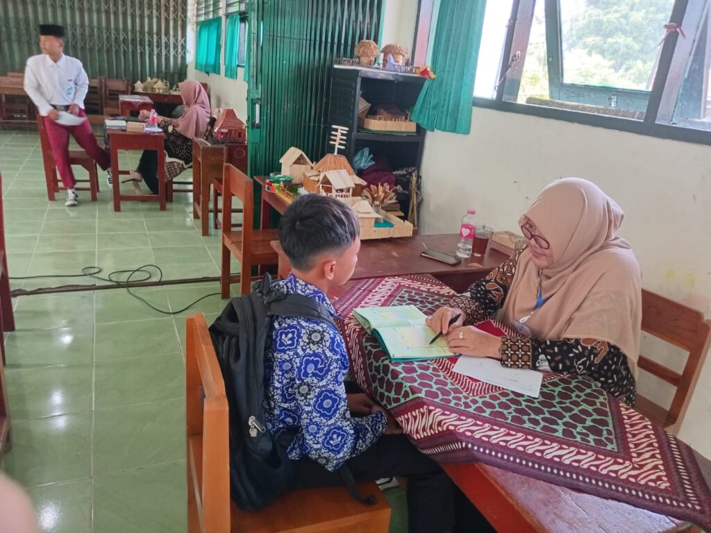Kemenag Sleman News (MTsN 3 Sleman) – MTsN 3 Sleman resmi memulai rangkaian seleksi Sistem Penerimaan Murid Baru (SPMB) Jalur Reguler dan Domisili pada Rabu (25/6) dengan penuh antusiasme. Hari pertama tercatat 122 pendaftar telah melalui tahap verifikasi dan langsung dijadwalkan untuk mengikuti uji kemampuan membaca Alquraan. Kegiatan seleksi bertempat di ruang kelas VII B dan VII C. Lima guru penguji dikerahkan untuk menilai kemampuan calon murid dalam membaca Alquran sebagai bagian dari proses seleksi awal yang bersifat wajib.