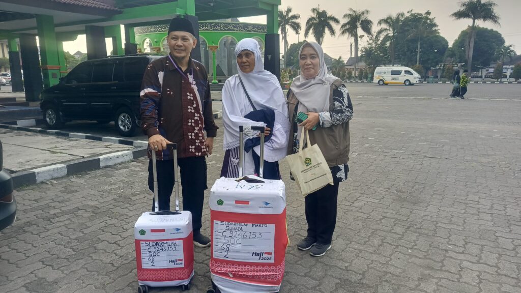 “Alhamdulillah semua diberi kemudahan dan kelancaran. Saya sangat bersyukur atas pelayanan yang baik dari seluruh petugas haji maupun Kemenag Sleman. Pelayanannya saya nilai 99,” ungkap Hj. Sudarmilah sambil tersenyum saat menunggu proses pengambilan koper di Asrama Haji.