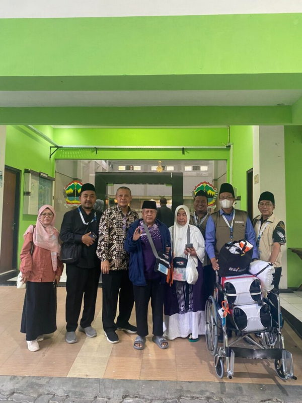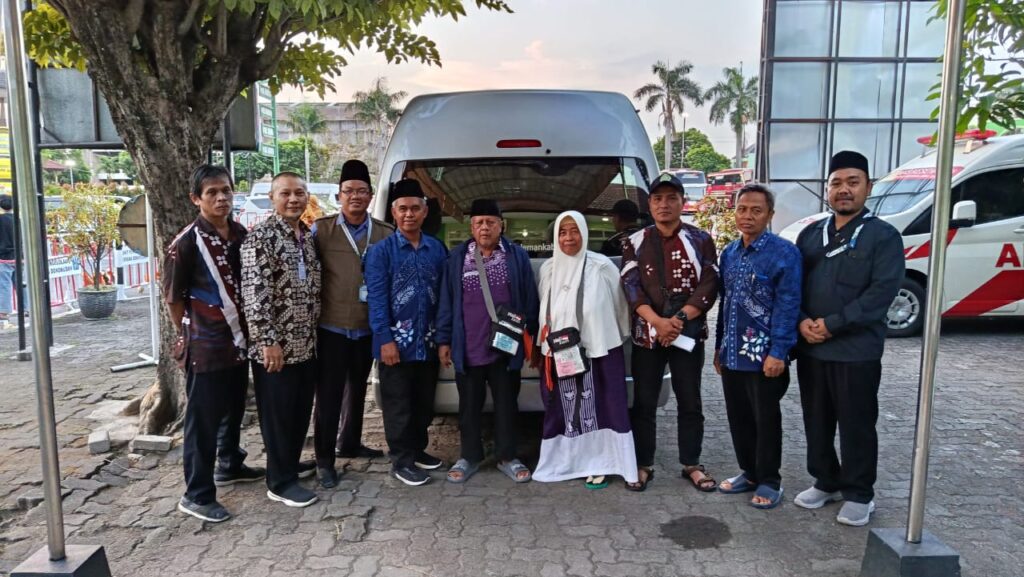 Kemenag Sleman News (Boyolali) — Dua jemaah haji Sleman H. Ngadiyono dan Hj. Haryani tiba di tanah air Jum’at (4/7/2025) sekitar pukul 15.50 WIB dengan Pesawat Garuda Indonesia dengan nomor penerbangan GIA6476 tergabung di kloter 76 SOC dari Kabupaten Klaten.Jemaah yang sebelumnya masuk kloter 65 SOC harus menunda keberangkatan karena alasan kesehatan, akhirnya di berangkatkan bersama kloter belakangnya.Tim penjemputan PPIH Daerah dari Bagian Kesra dan PHU Kemenag Sleman diterima oleh Kasi Penerimaan dan Pemberangkatan PPIH Debarkasi Solo, H. Basori Alwi, S.Ag., MA di depan Aula Muzdalifah. Setelah selesai upacara penerimaan dan doa di Gedung Muzdalifah selanjutnya jemaah di bawa ke Sleman dan di antar ke kediamannya di Tegalyoso, Banyuraden Kapanewon Gamping.(whd)