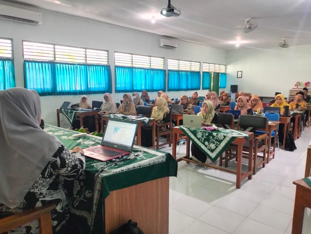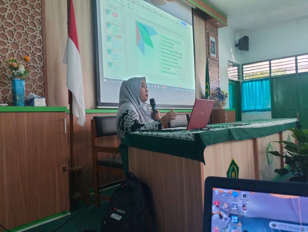 Kemenag Sleman News (MTsN 9 Sleman)— Kasi Penyelenggara Haji dan Umrah (PHU) Kantor Kementerian Agama Kabupaten Sleman, Dra. Hj. Noor Imanah, M.S.I., menyampaikan delapan program prioritas Kementerian Agama RI dalam kegiatan Pembinaan Moderasi Beragama yang digelar di MTsN 9 Sleman, Kamis (10/7/2025). Kegiatan ini merupakan bagian dari rangkaian Workshop Pembelajaran Mendalam dan Kurikulum Cinta yang diikuti oleh guru dan tenaga kependidikan.