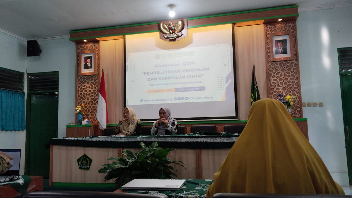 Kemenag Sleman News (MTsN 9 Sleman) – MTsN 9 Sleman menggelar Workshop Guru dan Tenaga Kependidikan (GTK) bertajuk “Pembelajaran Mendalam dan Kurikulum Cinta” pada Kamis (10/7/2025). Kegiatan ini dilaksanakan di ruang keterampilan MTsN 9 Sleman dan berlangsung sejak pukul 07.30 hingga 15.00 WIB. Workshop ini menjadi langkah awal dalam menyongsong pembelajaran tahun ajaran 2025/2026 dengan semangat perubahan dan pendekatan yang lebih bermakna.