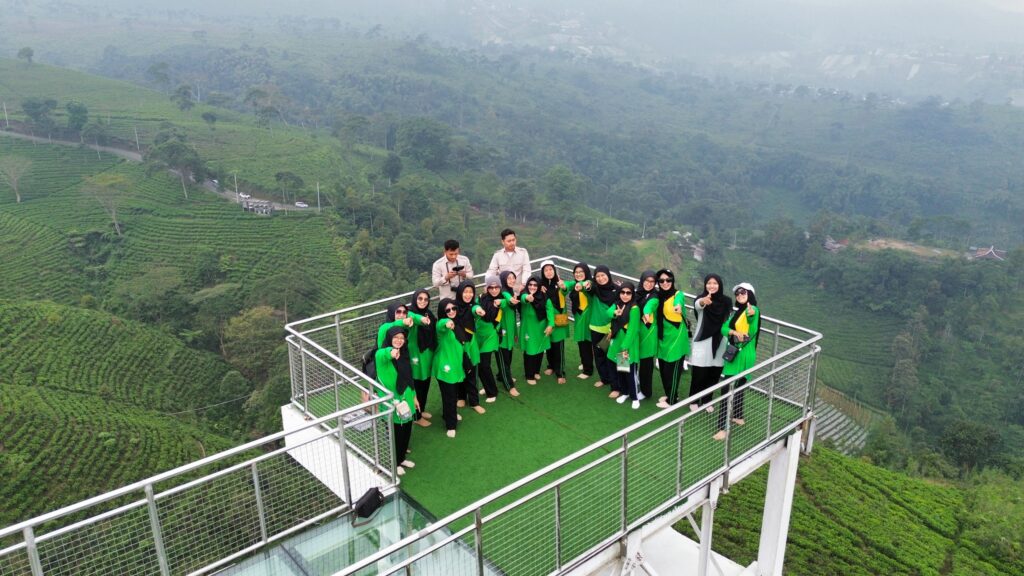 Setelah puas menikmati keindahan alam dari ketinggian, kegiatan dilanjutkan dengan menyusuri hamparan kebun teh yang sejuk. Suasana alami dan udara segar menjadi latar sempurna untuk mempererat kebersamaan antar civitas madrasah. Beberapa peserta juga memanfaatkan momen ini untuk membuat video kreatif dan konten dokumentasi kebersamaan.
