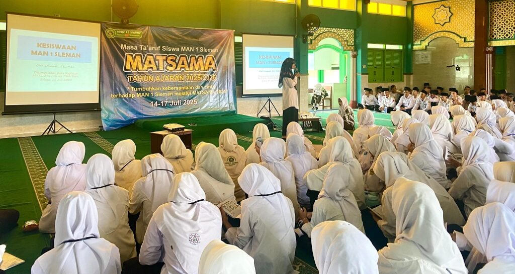 Kemenag Sleman News (MAN 1 Sleman) – Kegiatan Masa Ta’aruf Siswa Madrasah (MATSAMA) di MAN 1 Sleman memasuki hari kedua dengan semangat yang semakin membara. Rangkaian kegiatan yang dirancang hingga beberapa hari ke depan disambut dengan antusiasme tinggi dari para siswa baru. Setiap sesi diikuti dengan penuh semangat, mencerminkan kesiapan mereka untuk menyambut babak baru dalam pendidikannya.