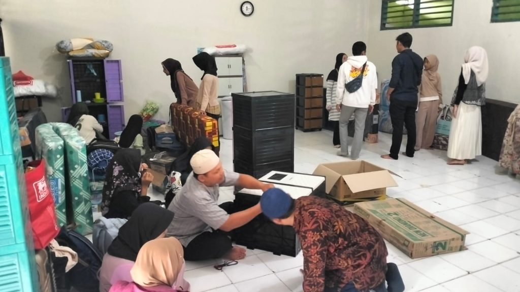 Para orang tua tampak antusias dan penuh perhatian dalam membantu putri mereka menata perlengkapan pribadi seperti lemari kamar asrama. Momen ini menjadi awal dari proses adaptasi santri terhadap lingkungan baru yang mendukung pembinaan karakter, kedisiplinan, dan kemandirian.
