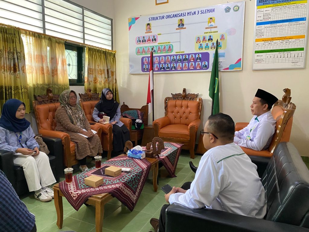 Kemenag Sleman News (MTs N 3 Sleman) — Persiapkan dengan matang kegiatan belajar mengajar di tahun ajaran 2025/2026, MTs Negeri 3 Sleman gandeng tentor dari luar. Di antaranya adalah lembaga Smartgama dan Codero. Senin (14/7/2025) Kepala Madrasah dan Waka Kurikulum adakan komunikasi dengan kedua lembaga tersebut di ruang kepala madrasah.