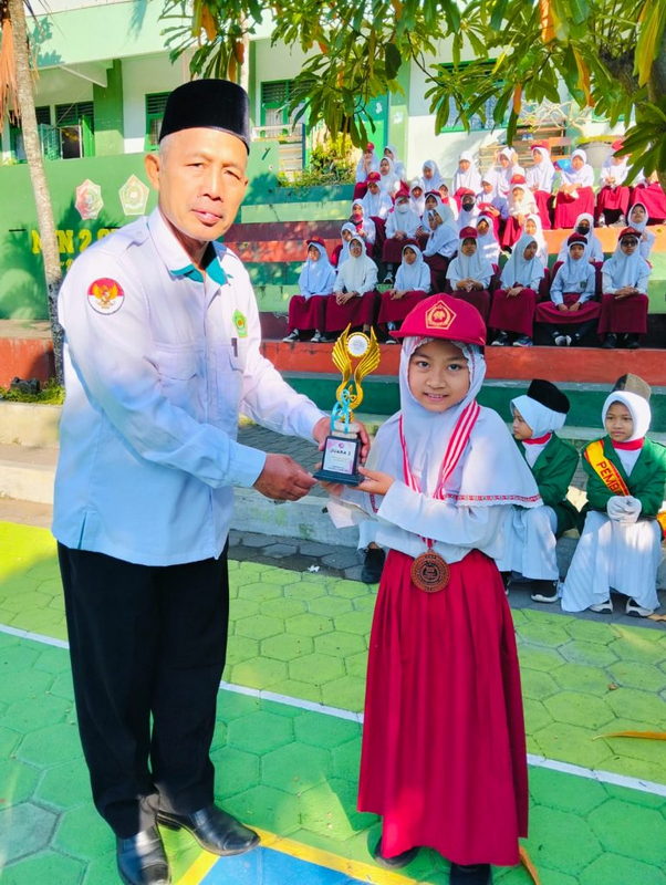 Kemenag Sleman News (MIN 2 Sleman) – Siswa MIN 2 Sleman, Mohaiya Mahrumi Therazuna, kembali menorehkan prestasi akademis dan hafalan. Kepala MIN 2 Sleman, Susetya, menyerahkan penghargaan kepada siswa pada Senin (21/7/2025) di halaman MIN 2 Sleman.