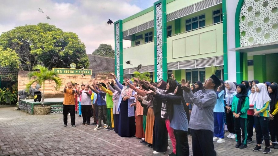Didampingi oleh Kepala MTsN 9 Sleman, Siti Juwariyah, serta beberapa guru, para siswa baru tampak antusias dan bahagia saat melepaskan burung-burung kecil dari sangkarnya ke udara bebas. Burung-burung yang dilepas terdiri dari berbagai jenis burung lokal yang jinak dan aman untuk lingkungan.