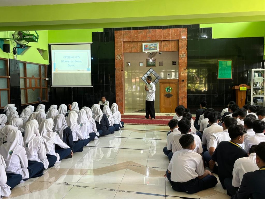 Kemenag Sleman News (MTsN 6 Sleman)- Salah satu program inovasi kurikulum MTsN 6 Sleman bertajuk Kompetisi Mandiri Siswa (KMS) yang ditujukan untuk murid kelas 9 akan dimulai pekan ketiga ajaran baru, yaitu pada Senin (28/7/2025). Sosialisasi terkait program ini disampaikan oleh Waka Kurikulum MTsN 6 Sleman, Anang Sumarna, yang didampingi oleh Koordinator KMS, Nurhuda Muttaqin, pada Senin (21/7/2025) di Masjid Darul Adzkiya.