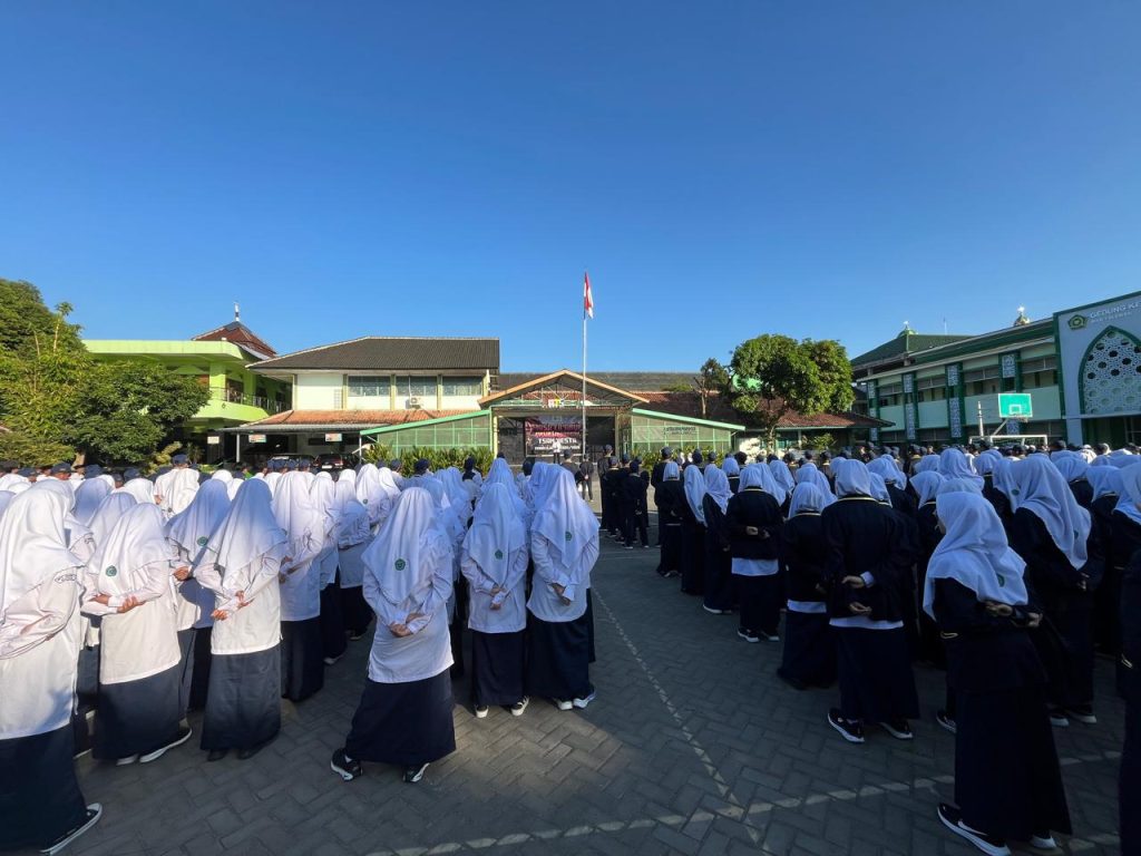 Kemenag Sleman News (MTsN 6 Sleman) – Kegiatan apel rutin MTsN 6 Sleman diselenggarakan pada Senin (21/7/2025) pagi dimulai pukul 07.15. Apel diikuti oleh kepala madrasah, KaTU, segenap waka, jajaran kanit, seluruh guru dan tenaga kependidikan, serta semua murid mulai dari kelas 7 sampai dengan kelas 9. Apel dimulai setelah Waka Kesiswaan selesai memimpin ketertiban barisan dan Anang Sumarna, Waka Kurikulum MTsN 6 Sleman, bertindak sebagai pembina apel.