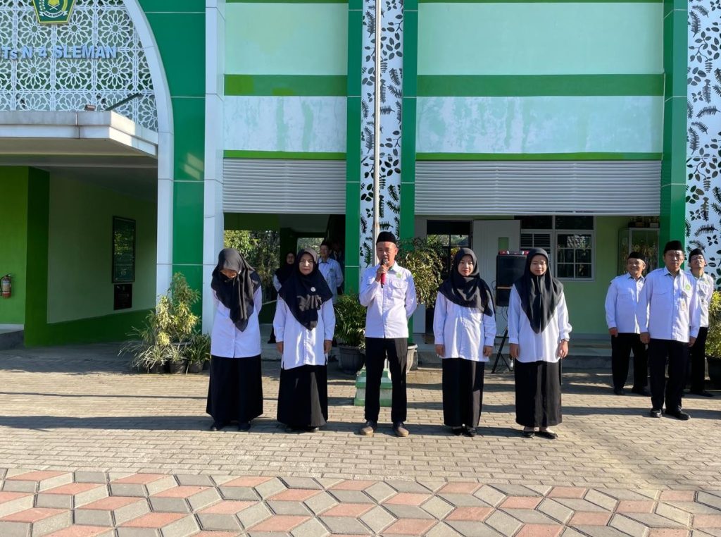 Kemenag Sleman News (MTsN 4 Sleman) – MTsN 4 Sleman kembali menghadirkan semangat baru dalam dunia pendidikan dengan memperkenalkan lima guru baru kepada seluruh warga madrasah. Perkenalan ini dilangsungkan seusai pelaksanaan upacara bendera, Senin (21/7/2025) di halaman madrasah. Hadir dalam kegiatan ini para murid, guru, dan pegawai yang antusias menyambut kehadiran para pendidik baru.