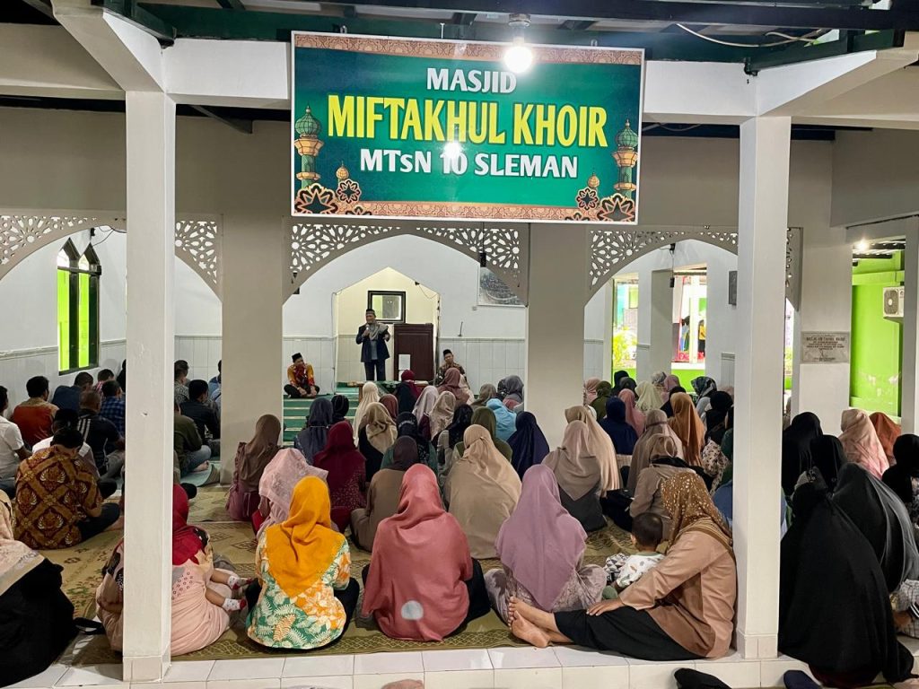 Kemenag Sleman News /MTsN 10 Sleman (30 Juli 2025) – MTsN 10 Sleman mengadakan kegiatan parenting perdana tahun ajaran 2025/2026 bagi orang tua murid kelas 7. Bertempat di Masjid Miftakhul Khair MTsN 10 Sleman, kegiatan diselenggarakan Rabu pagi, pukul 07.30 s.d. 09.30 WIB. Acara bertujuan membekali orang tua dengan pemahaman pentingnya membentuk generasi yang kuat, berakhlak mulia, dan berprestasi, sesuai visi madrasah membangun generasi Qurani dan berprestasi.