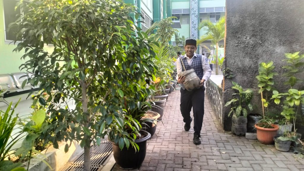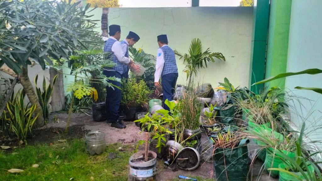 Sukseskan Adiwiyata Nasional, Siswa MTsN 9 Sleman Semangat Bersih-bersih dan Tata Pot