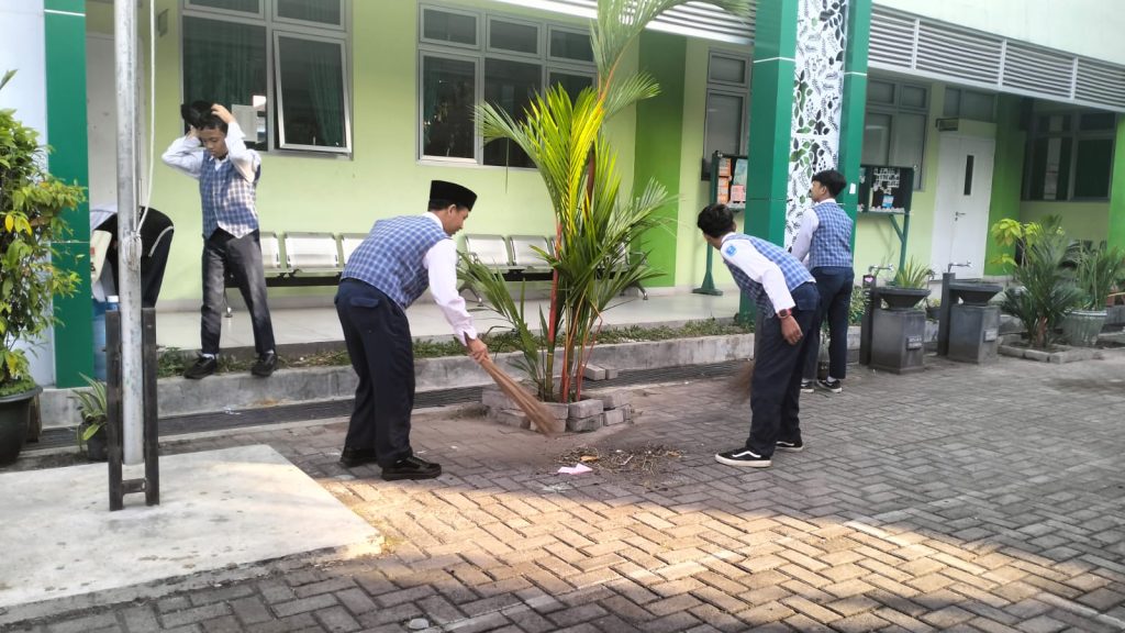 Kemenag Sleman News (MTsN 9 Sleman)- Dalam upaya menyukseskan program Adiwiyata tingkat nasional, siswa MTsN 9 Sleman menunjukkan semangat tinggi dalam menjaga kebersihan dan keindahan lingkungan madrasah. Pada Selasa pagi (22/7/2025) sejumlah siswa kelas VIII C secara kompak melaksanakan kegiatan bersih-bersih dan penataan pot di selasar depan kelas mereka. Kegiatan ini dipandu langsung oleh Siti Juwariyah selaku Kepala MTsN 9 Sleman serta guru mata pelajaran jam pertama.