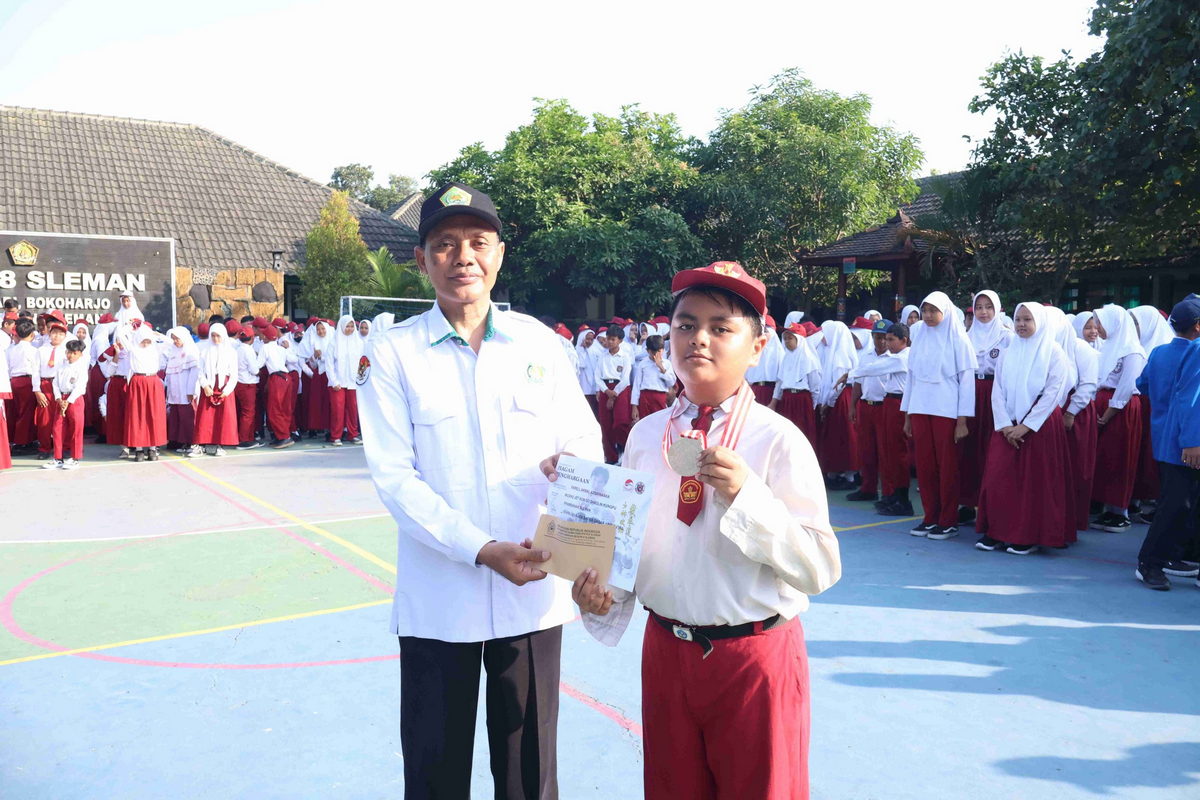 Penghargaan atas prestasi Farell disampaikan secara langsung oleh Kepala MTsN 8 Sleman, Agus Sholeh, S.Ag., dalam upacara bendera yang dilaksanakan pada Senin pagi (04/08/2025). Momen ini menjadi sorotan seluruh warga madrasah, yang menyambutnya dengan tepuk tangan meriah sebagai bentuk apresiasi atas kerja keras dan dedikasi Farell.