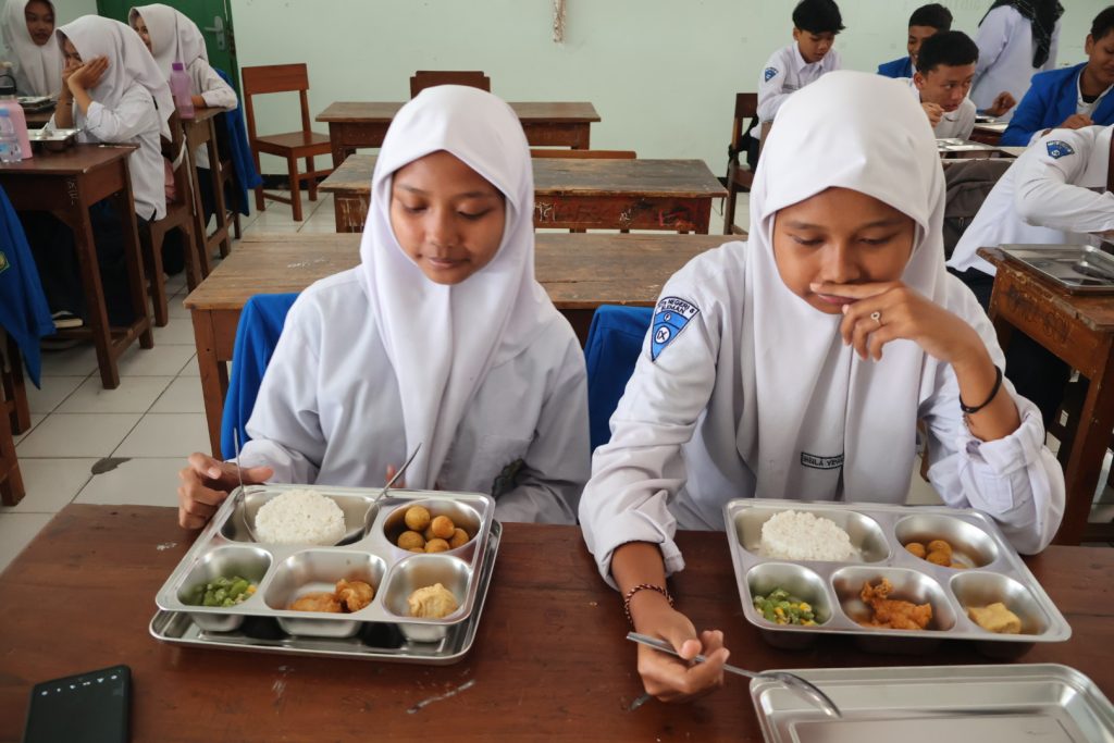 Para siswa menyambut menu ini dengan penuh semangat. Sebagian besar dari mereka makan dengan lahap hingga piring tampak bersih. Kehadiran buah sebagai pencuci mulut juga menambah kesegaran dan memperkaya asupan vitamin.