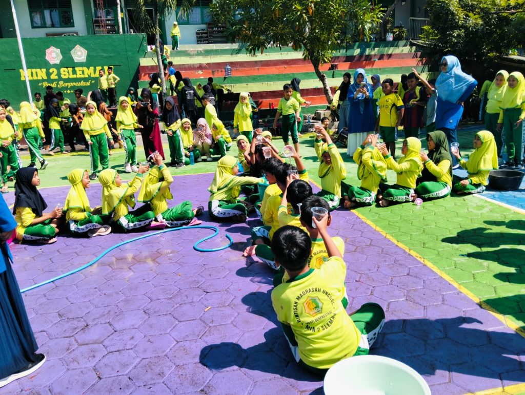 Latih Ketangkasan, Lomba Estafet Air Siswa MIN 2 Sleman Hiasi HUT RI