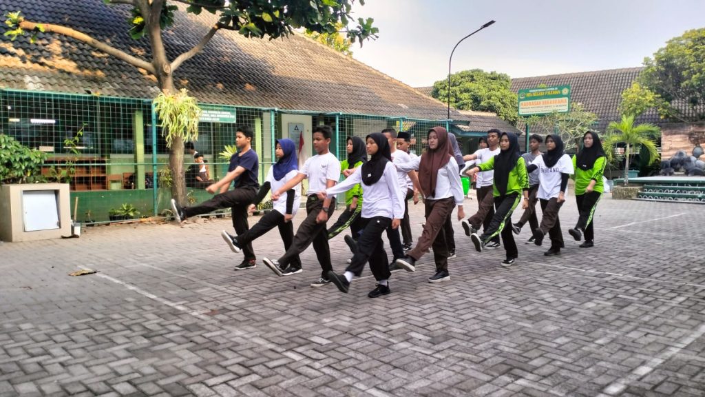 Kemenag Sleman News (MTsN 9 Sleman)- Menjelang peringatan Hari Ulang Tahun (HUT) ke-80 Republik Indonesia yang jatuh pada Minggu (17/8/2025) mendatang, sebanyak 17 siswa MTsN 9 Sleman yang tergabung dalam pasukan inti pengibar bendera tampak penuh semangat mengikuti latihan rutin setiap sore hari. Latihan ini digelar sebagai bentuk persiapan untuk mengibarkan Sang Merah Putih dalam upacara peringatan kemerdekaan tingkat madrasah.
