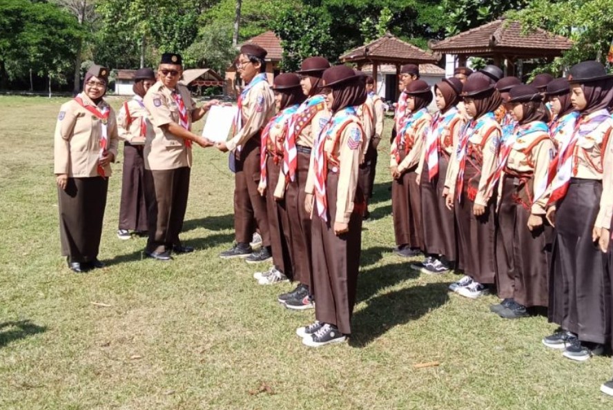 Dewan Penggalang MTsN 8 Sleman Raih Penghargaan Bintang Tahunan pada Upacara Hari Pramuka