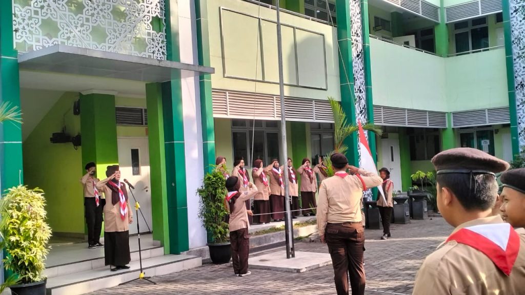 Kemenag Sleman News (Sleman)– MTsN 9 Sleman menggelar upacara peringatan Hari Pramuka ke-64 pada Kamis (14/8/2025) di halaman madrasah mulai pukul 07.00 hingga 07.45 WIB. Seluruh siswa kelas VII, VIII, dan IX, beserta Bapak/Ibu guru dan pegawai MTsN 9 Sleman hadir dengan mengenakan seragam Pramuka lengkap.