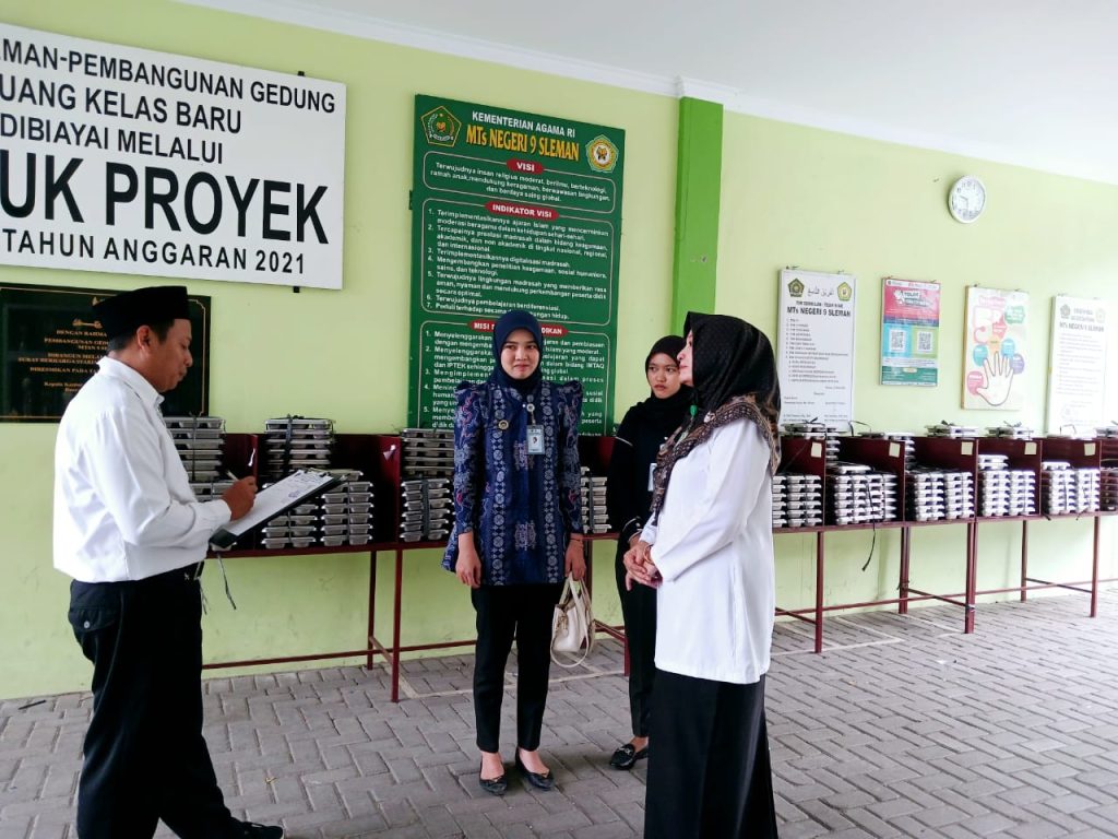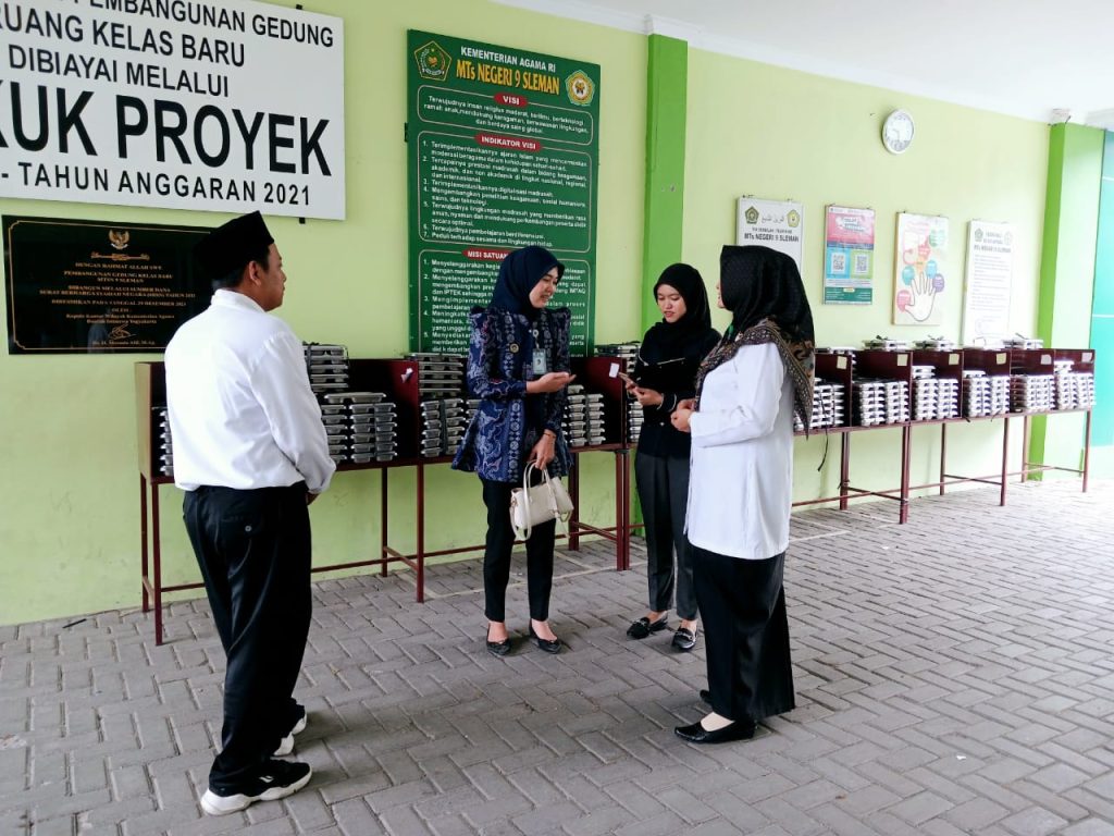 Kemenag Sleman News (MTsN 9 Sleman)— Kepala Seksi Penyediaan dan Pengolahan Gizi (SPPG) Lanud Adisucipto, Ibu Dea bersama tim melakukan pemantauan program Makan Bersama Gizi (MBG) di MTsN 9 Sleman pada Selasa (12/8/2025). Dalam kegiatan ini, Dea tidak hanya memastikan kualitas gizi makanan yang disajikan, tetapi juga melakukan pendataan siswa yang memiliki alergi terhadap makanan tertentu.