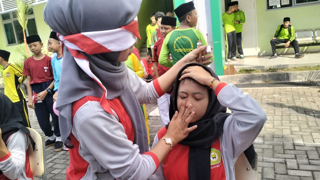 Kemenag Sleman News (MTsN 9 Sleman) – Dalam rangka menyambut dan memeriahkan Peringatan Hari Ulang Tahun ke-80 Republik Indonesia, MTsN 9 Sleman menyelenggarakan kegiatan lomba antar kelas. Rangkaian kegiatan lomba yang dipertandingkan diantaranya yakni lomba Make-up dengan mata tertutup dan lomba balap karung dengan helm. Kegiatan lomba 17 Agustus ini dilaksanakan hari Jumat (15/08/2025). Untuk lomba Make-up dengan mata tertutup setiap kelas mengirimkan dua wakilnya, satu siswa sebagai model dan siswa satunya menjadi periasnya. Peralatan Make-up dibawa sendiri oleh siswa dari rumah.
