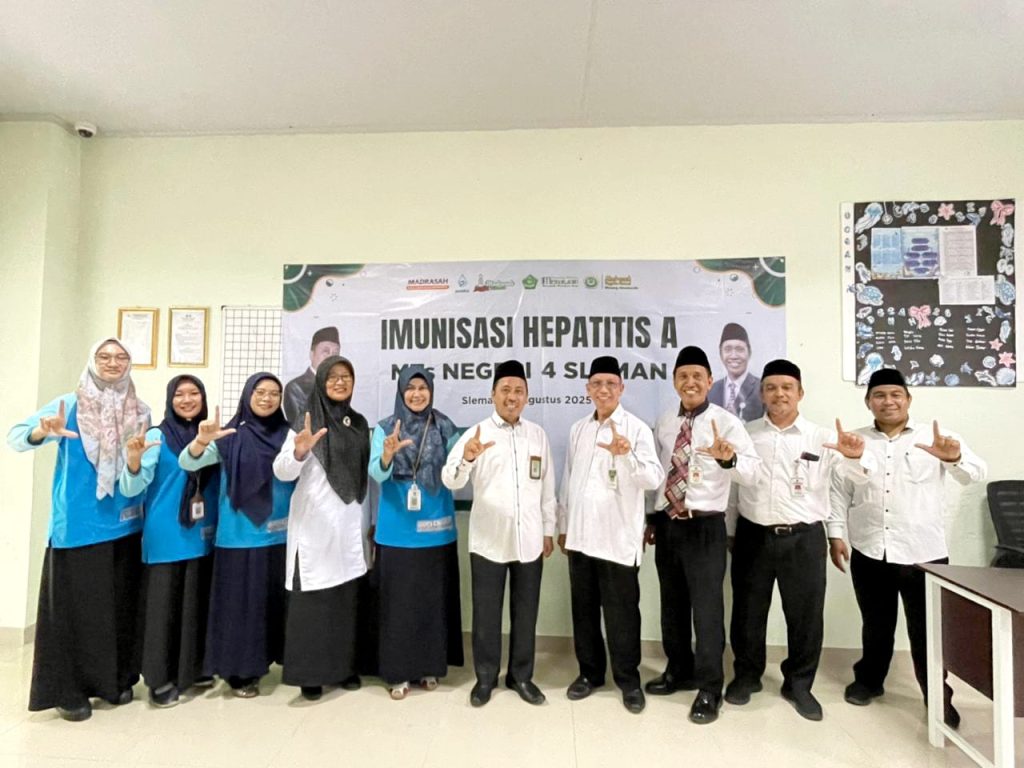 Kemenag Sleman News — Kantor Kementerian Agama Kabupaten Sleman melakukan monitoring dan evaluasi (monev) pelaksanaan imunisasi Hepatitis A di MTsN 4 Sleman pada Selasa (19/8/2025).