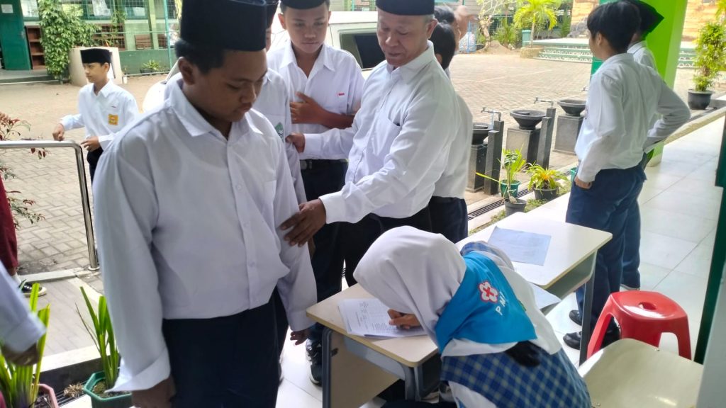 Kemenag Sleman News (MTsN 9 Sleman)— Anggota Palang Merah Remaja (PMR) MTsN 9 Sleman menunjukkan kepeduliannya terhadap kesehatan dengan mendukung pelaksanaan imunisasi Hepatitis A bagi siswa kelas VII pada hari Selasa (19/8/2025). Dalam kegiatan yang menggandeng Puskesmas Depok 1 tersebut, para pengurus PMR ikut aktif membantu kelancaran jalannya imunisasi.