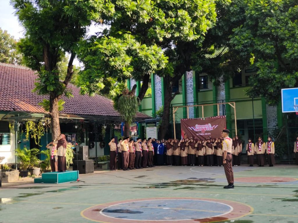 Bertugas sebagai pembina upacara, staf waka kesiswaan Hanifah, S.Hum., menyampaikan sambutan Ketua Kwartir Nasional Gerakan Pramuka Komjen Pol (Purn) Drs. Budi Waseso yang mengusung tema “Kolaborasi Untuk Membangun Ketahanan Bangsa”.