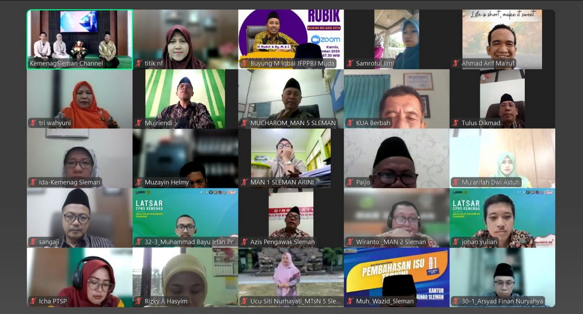 Kemenag Sleman News – Kepala Kantor Kementerian Agama Kabupaten Sleman H. Nadhif, S.Ag, M.SI hadir sebagai narasumber dalam podcast RUBIK (Ruang Bicara Kita) Edisi 58. RUBIK kali ini digelar Kamis (4/9/2025) pagi secara virtual melalui ruang zoom meeting dan mengusung tema KanKemenag Sleman Menyapa.