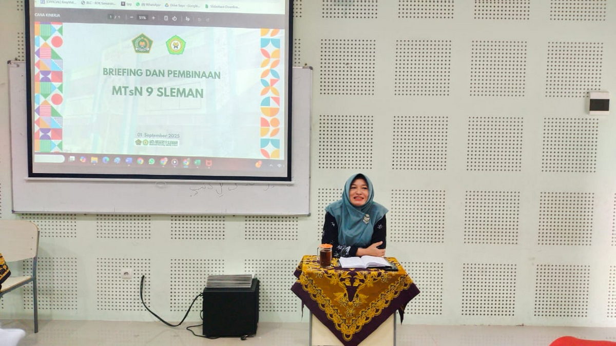 Kemenag Sleman News (MTsN 9 Sleman) – MTsN 9 Sleman menggelar briefing dan pembinaan bagi guru dan pegawai perdana di bulan September pada hari Senin (01/9/2025) di ruang multimedia. Pada kegiatan tersebut dihadiri oleh bapak/ ibu guru dan pegawai. Acara dimulai pada pukul 07.00 WIB dan berakhir pada pukul 08.30 WIB. Briefing dan pembinaan di pimpin langsung oleh Kepala MTsN 9 Sleman yakni Siti Juwariyah.