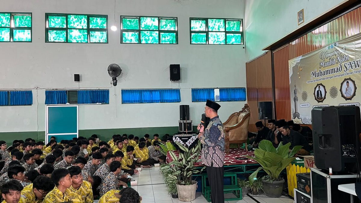 Kemenag Sleman News (MAN 5 Sleman) – Dalam rangka memperingati Maulid Nabi Muhammad SAW, MAN 5 Sleman menyelenggarakan pengajian pada Kamis (4/9/2025). Kegiatan yang bertema “Memaknai Maulid Nabi dengan Semangat Zaman yang Baru” ini diadakan di aula madrasah dengan penuh khidmat.