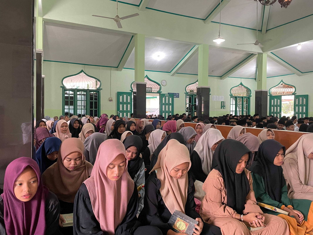 Kemenag Sleman News (MTsN 4 Sleman) – Dalam rangka memperingati Maulid Nabi Muhammad SAW, MTsN 4 Sleman menggelar rangkaian kegiatan meliputi simaan Al-Qur’an juz 29, pembacaan Maulid Al-Barzanji, pengajian, serta santunan untuk siswa yatim piatu Senin (8/9/2025). Suasana penuh khidmat tampak di lingkungan madrasah sejak pagi hingga acara berakhir.
