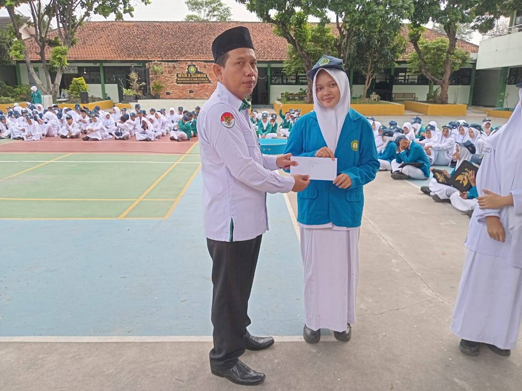 Kepala MTs Negeri 3 Sleman Suwardi, S.S., M.Pd. memberikan langsung reward kepada para pemenang lomba berupa uang pembinaan. Kepala berpesan,â jangan dilihat dari nominal uangnya, tap apresiasi menjadi motivasi kedepan lebih semangat dan lebih baik lagi,â tandasnya. Tampak semua murid menyambut meriah dan gembira pembagian reward ini, karena mereka berencana untuk membagi rata hadiahnya satu kelas, sehingga mereka ikut merasakan. (lin/tnf)