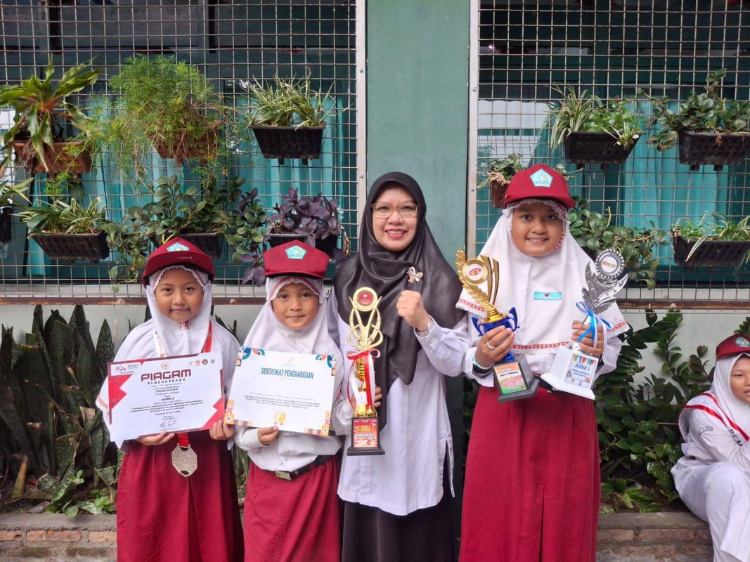 Sementara itu, dari bidang seni rupa, Azka Afsheen Myesha sukses memborong dua piala sekaligus, yakni Juara 1 Lomba Mewarnai Probaby dan Juara 2 Lomba Mewarnai Petualangan Russel. Dengan kreativitas dan ketekunannya, Azka mampu menghasilkan karya seni yang menarik dan penuh warna, membuktikan bahwa minat dan bakat siswa perlu terus didukung sejak dini.