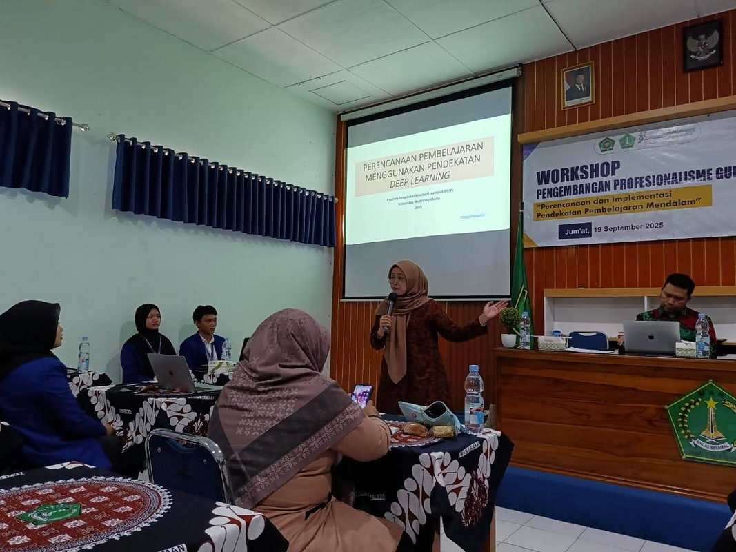 Kemenag Sleman News (MAN 5 Sleman) – Dalam rangka meningkatkan kualitas pembelajaran, MAN 5 Sleman menyelenggarakan workshop bertajuk “Perencanaan dan Implementasi Pendekatan Pembelajaran Mendalam” pada Jumat (19/9/2025). Acara yang berlangsung di ruang AVA MAN 5 Sleman mulai pukul 13.00 WIB hingga selesai ini diikuti oleh seluruh guru MAN 5 Sleman.
