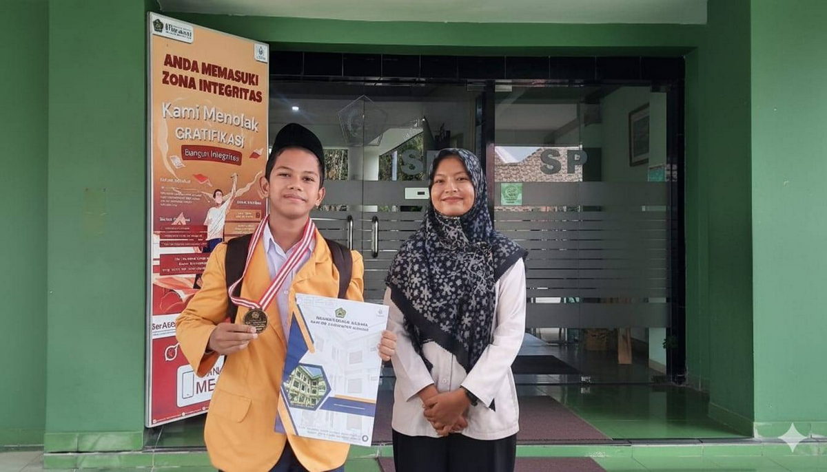 Kemenag Sleman News (MTsN 9 Sleman) – Prestasi membanggakan telah diraih MTsN 9 Sleman melalui ajang Olimpiade Madrasah Indonesia (OMI). Muhammad Rizki Saputra, siswa kelas VIII C dinyatakan berhasil meraih juara 1 pada bidang Matematika tingkat Kabupaten Sleman. Keberhasilan ini tentu tak lepas dari peran Widyajayanti selaku guru matematika MTsN 9 Sleman yang telaten membimbing Rizki hingga mencapai prestasi gemilang tersebut.