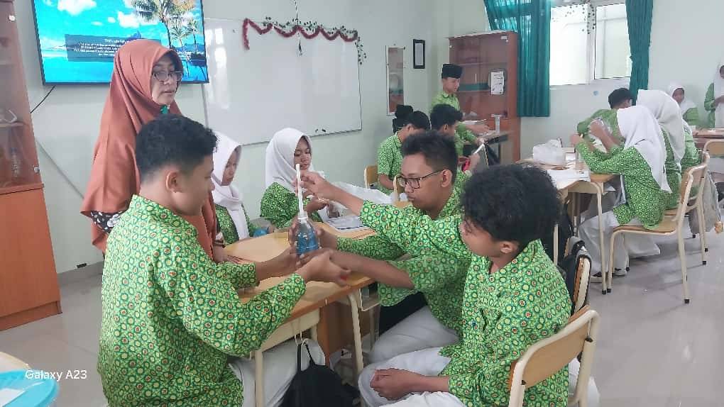 Kemenag Sleman News (MTsN 9 Sleman) – Hari Rabu (24/9/2025) siswa kelas VIIIA MTsN 9 Sleman mengikuti pembelajaran Ilmu Pengetahuan Alam (IPA) yang dipandu oleh Umu Hani’. Kegiatan berlangsung pada jam pelajaran ke-1 hingga jam ke-3 dengan suasana yang sangat antusias. Dalam pembelajaran kali ini, para siswa diajak untuk membuat alat percobaan sederhana sebagai pemodelan sistem pernapasan dada. Menariknya, alat dan bahan yang digunakan memanfaatkan bahan bekas seperti botol air mineral, sehingga kegiatan ini sekaligus menumbuhkan kesadaran akan pentingnya daur ulang dan pemanfaatan limbah.
