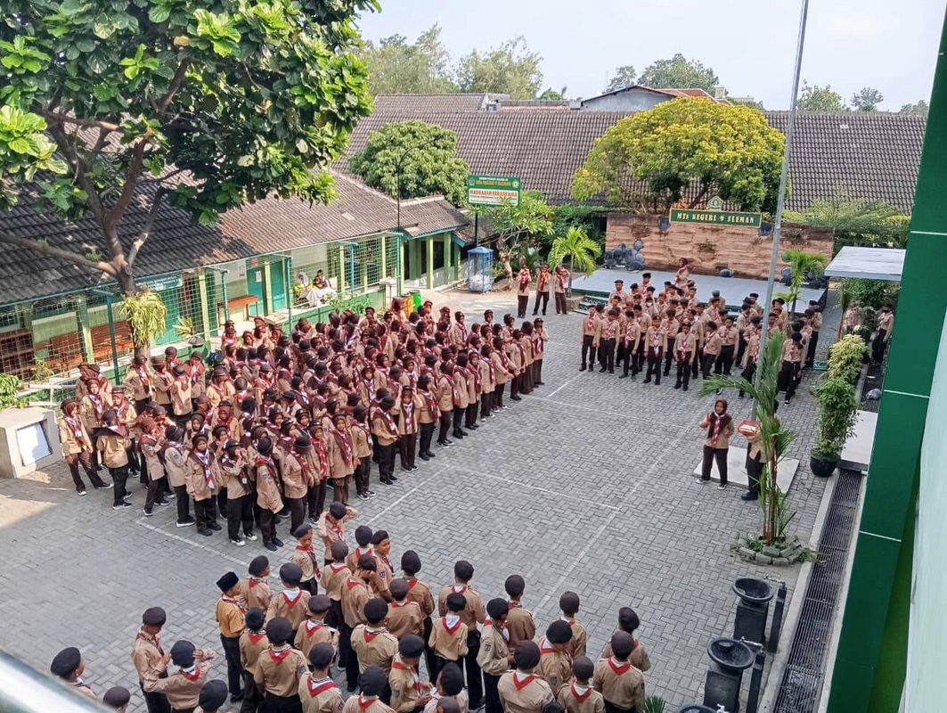 Kemenag Sleman News (MTsN 9 Sleman) – Dalam rangka membentuk generasi muda yang berkarakter dan berjiwa kepemimpinan, MTsN 9 Sleman rutin menggelar kegiatan ekstrakurikuler Pramuka setiap hari Kamis. Agenda pramuka kali ini adalah pengumuman seleksi Dewan Penggalang. Kegiatan ini digelar pada Kamis sore (25/9/2025). Kegiatan ini berlangsung dengan khidmat di halaman madrasah dan diikuti oleh seluruh anggota pramuka kelas VII, VIII serta jajaran Pembina Pramuka MTsN 9 Sleman.