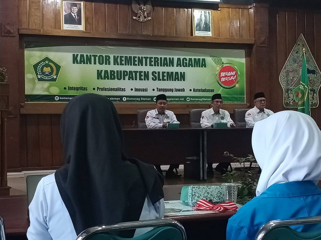 Sleman (MTs N 3 Sleman) — Siswa dan guru MTs Negeri 3 Sleman menghadiri kegiatan pendampingan dan pembinaan bagi para pemenang Olimpiade Madrasah Indonesia (OMI) tingkat Kabupaten Sleman yang digelar di aula lantai 3 Kantor Kementerian Agama Kabupaten Sleman pada Senin (22/92025).